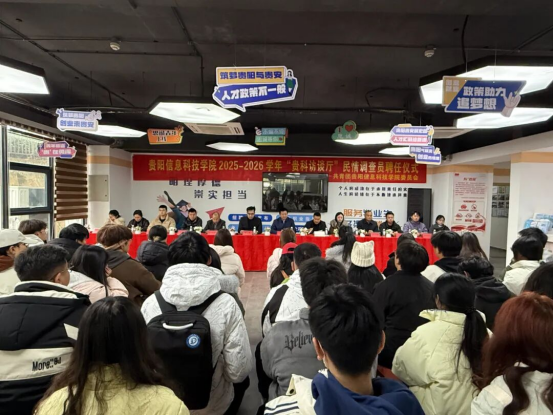 作为校团委“我为同学”系列服务活动的核心组成部分,“贵科访谈厅”以畅通师生发声渠道为核心目标,聚焦师生在工作、学习、生活中的“急难愁盼”问题,精准回应诉求、高效解决难题。为进一步提高“贵科访谈厅”服务效能,学校专门组建民情调查员队伍,旨在搭建学校与学生之间的高效沟通桥梁,通过及时收集、反馈学生在学习生活中的合理诉求,为同学们解决问题、打造更优质的成长环境,也为学校发展建言献策,助力校园治理提质增效。