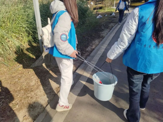 活动当日,志愿者们身着统一服装,在指定地点集结。带队同学分发清洁工具,明确安全事项后,队伍分为两组:一组沿河岸细致清理,一组沿人行道推进。途中偶遇清运垃圾桶的环卫阿姨,志愿者们主动上前协助,让环保行动更添暖意。