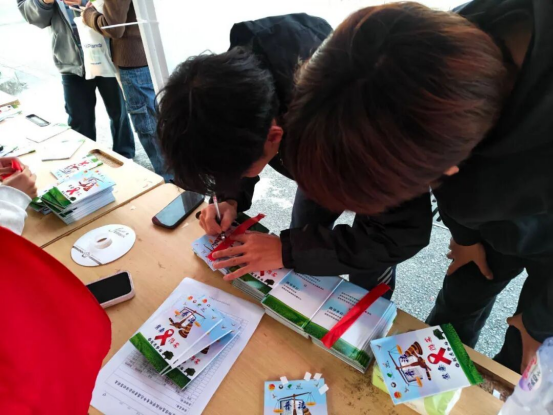 12月2日,“预防艾滋病,我们在行动”主题摆点活动在校园有序开展:工作人员向参与学生发放防艾宣传手册并同步科普传播途径、防护要点,随后通过一对一知识问答巩固认知、厘清“日常接触不感染”等误区,现场学生还亲手制作红丝带并写下“拒绝歧视,用爱包容”“我们在一起”等暖心寄语,最后在签名墙留下笔迹,以实际行动许下“科学防艾、零歧视”的承诺。
