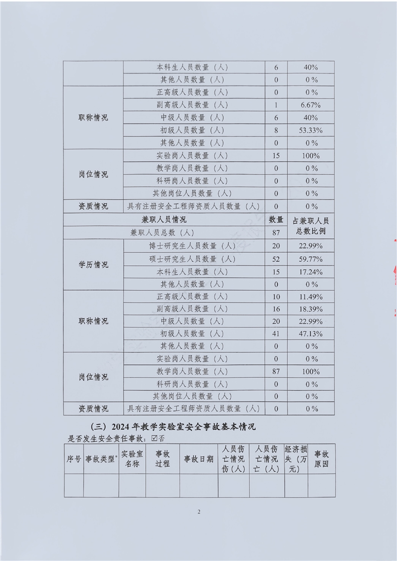 beat365在线唯一官网2024年度高校教学实验室安全工作年度报告