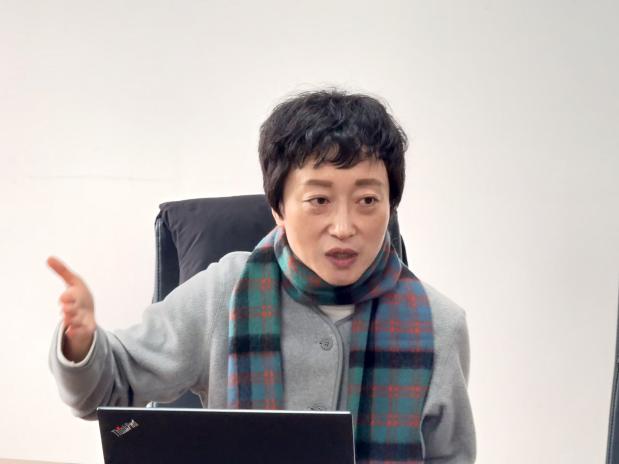 王园园老师以《大学英语课程创新与实践》为题,分享了贵州师范大学在选用《新未来大学英语》教材开展教学的实践经验与阶段性成果。她围绕教学节奏把控、单元案例设计、学生成果转化等方面展开阐述,详细解析了如何通过课前预习、课中研讨、课后拓展的三阶段教学模式,构建项目式教学闭环体系。王老师强调,该教材在助力学生夯实语言能力的同时,更通过丰富的项目任务设计,锻炼学生视频制作、文化遗产保护等综合素养,实现课程思政与语言教学的有机融合。此外,她还分享了过程性评价体系的构建思路与科研课题挖掘路径,鼓励教师立足教学实践提炼研究方向,以研促教、教研相长。