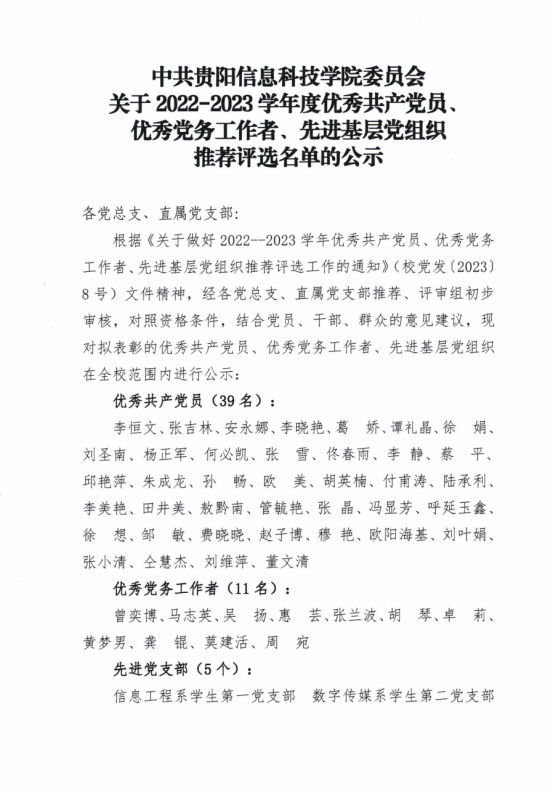 转发:中共beat365在线唯一官网委员会关于2022-2023学年度优秀共产党员、优秀党务工作者、先进基层党组织推荐评选名单的公示