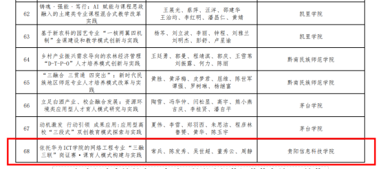 根据《贵州省教育厅关于组织开展2024年省级高等教育教学成果奖评选工作的通知》文件精神,经相关单位申报、省教育厅组织专家评审,并报厅党组会审定,我院教学成果《依托华为ICT学院的网络工程专业“三融 三联”岗证赛·课育人模式构建与实践》荣获二等奖。