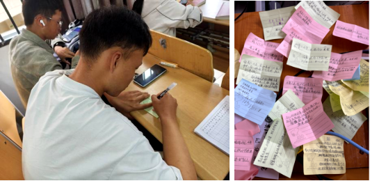 随后的“困惑交换”环节,更是将活动气氛推向高潮,同学们手持自己的标签,随机与他人交换“心事”。拿到陌生同学的困惑后,大家纷纷化身“心灵智囊,结合自己的经历与思考写下建议:针对“社交焦虑”,有人提议“从一起去食堂吃饭、图书馆自习开始,慢慢打开话匣子”;面对“学业压力”,有同学分享“制定每日学习清单,把大目标拆成小任务”等等;字里行间的真诚建议,让每一张标签都变成了传递温暖的“解忧信”。