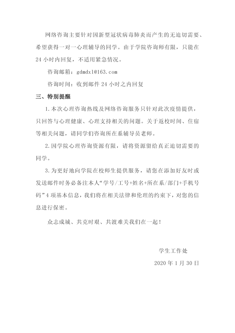 关于大学生心理健康教育与咨询中心开通“抗疫防抑”心理热线的通知