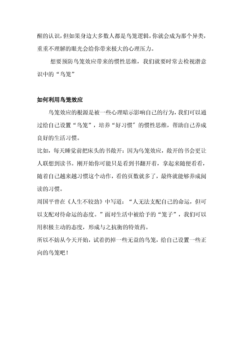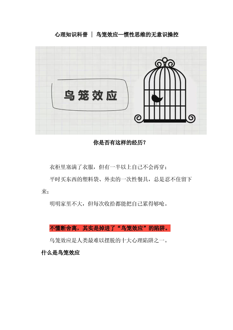 心理知识科普— 鸟笼效应 惯性思维的无意识操控
