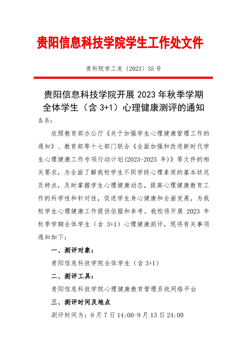 beat365在线唯一官网开展全体学生(含3+1)心理健康测评的通知