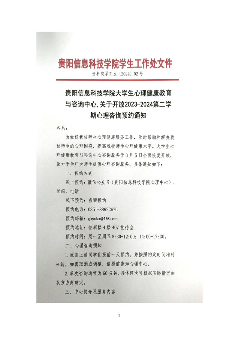 beat365在线唯一官网2023-2024第二学期心理中心开放咨询预约通