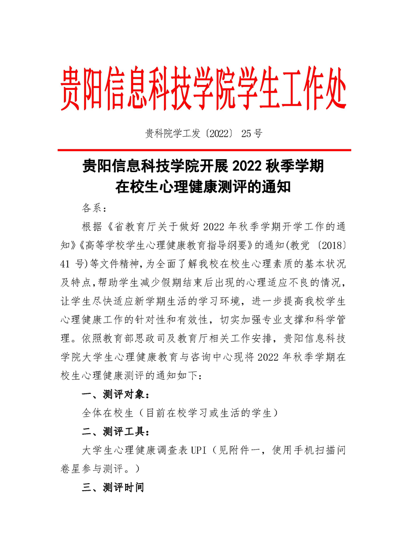 beat365在线唯一官网开展2022年秋季学期全体在校生心理健康测评工作