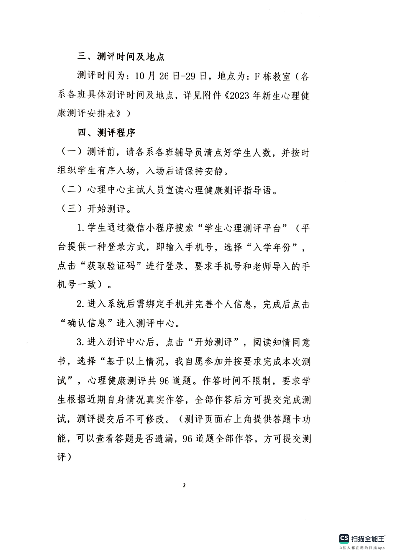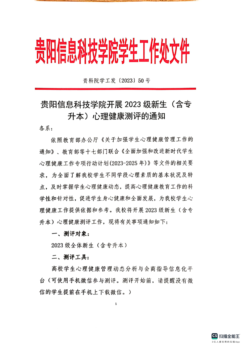 beat365在线唯一官网开展2023级新生(含专升)心理健康测评的通知