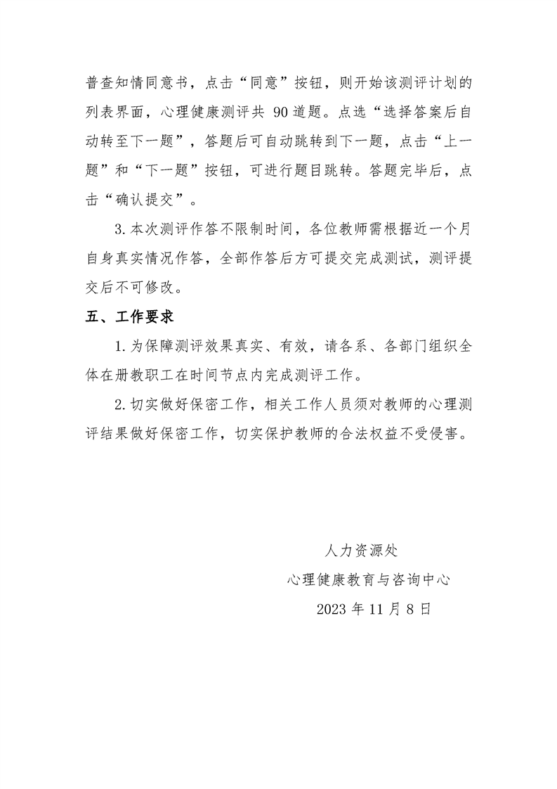 beat365在线唯一官网关于开展2023年教职工心理健康测评的通知