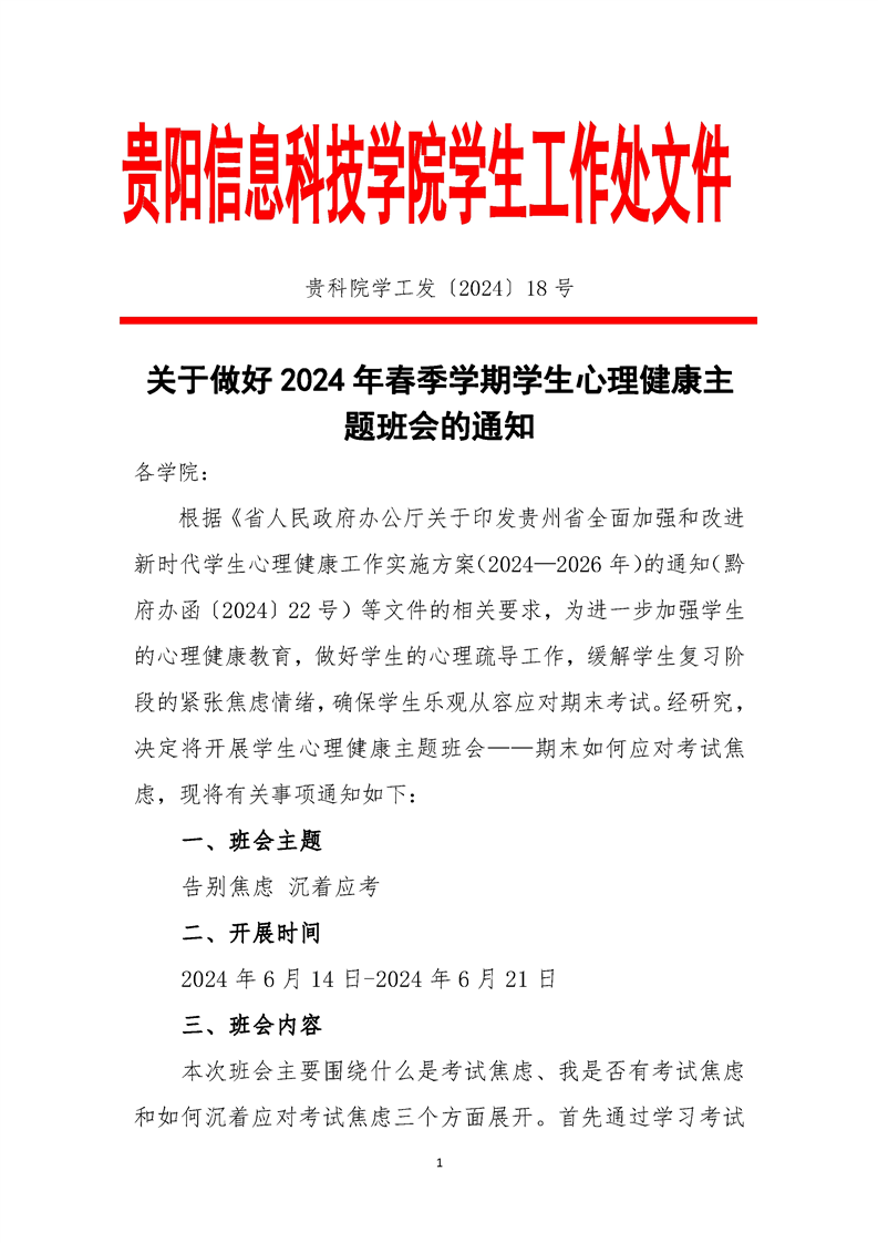beat365在线唯一官网开展2024年春季学期学生心理健康主题班会的通知