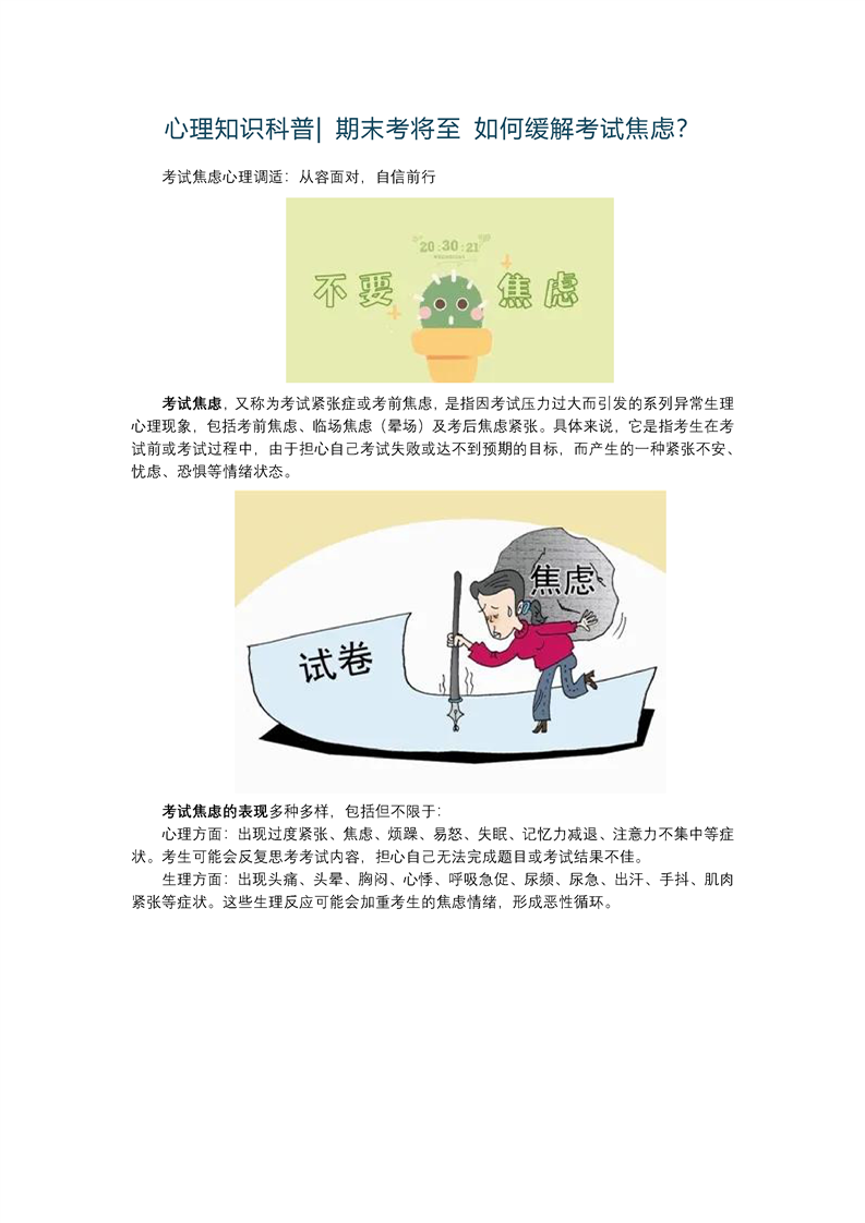 心理知识科普-期末考试将至 如何缓解考试焦虑?