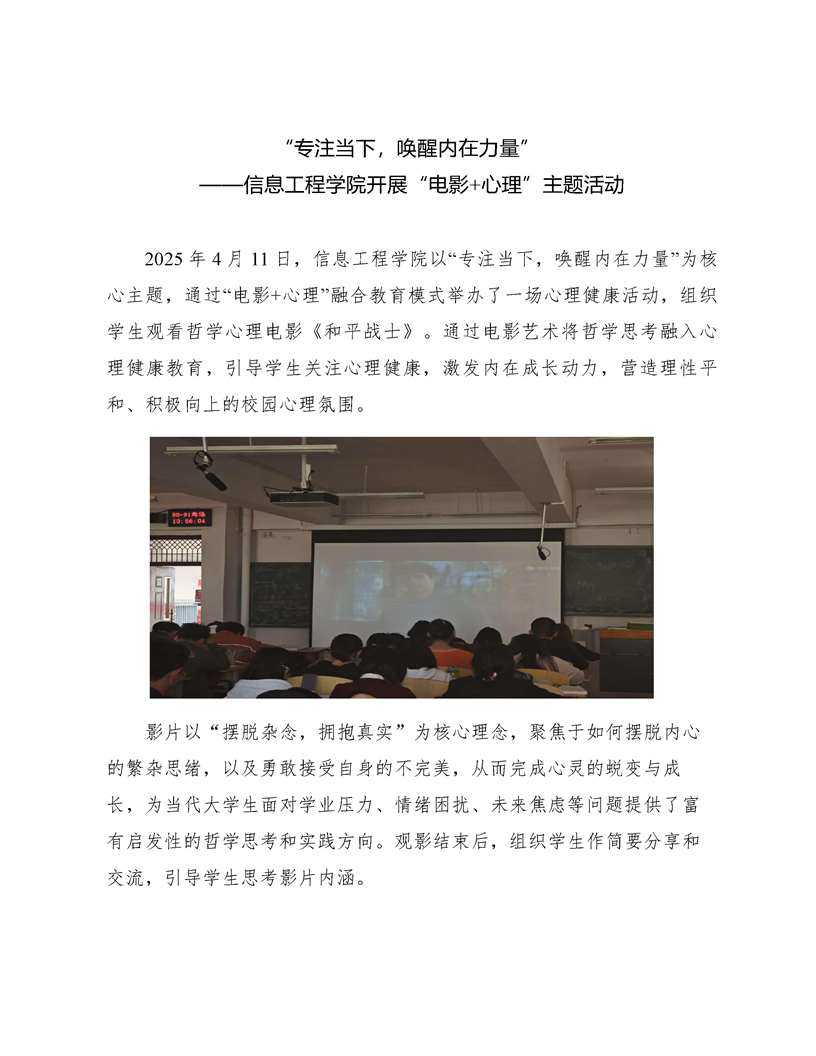 “专注当下,唤醒内在力量“——信息工程学院开展“电影+心理”主题活动