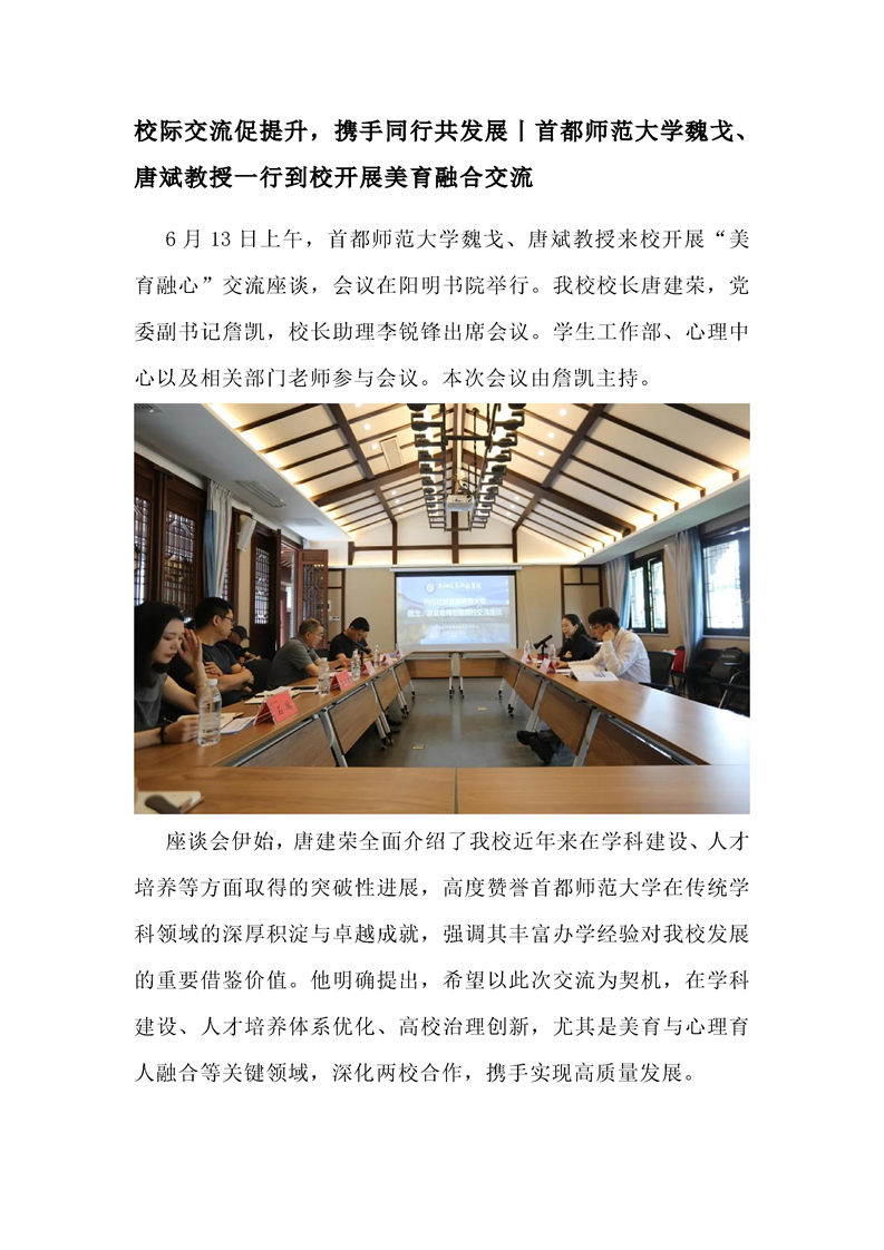 校际交流促提升,携手同行共发展丨首都师范大学魏戈、唐斌教授一行到校开展美育融合交流