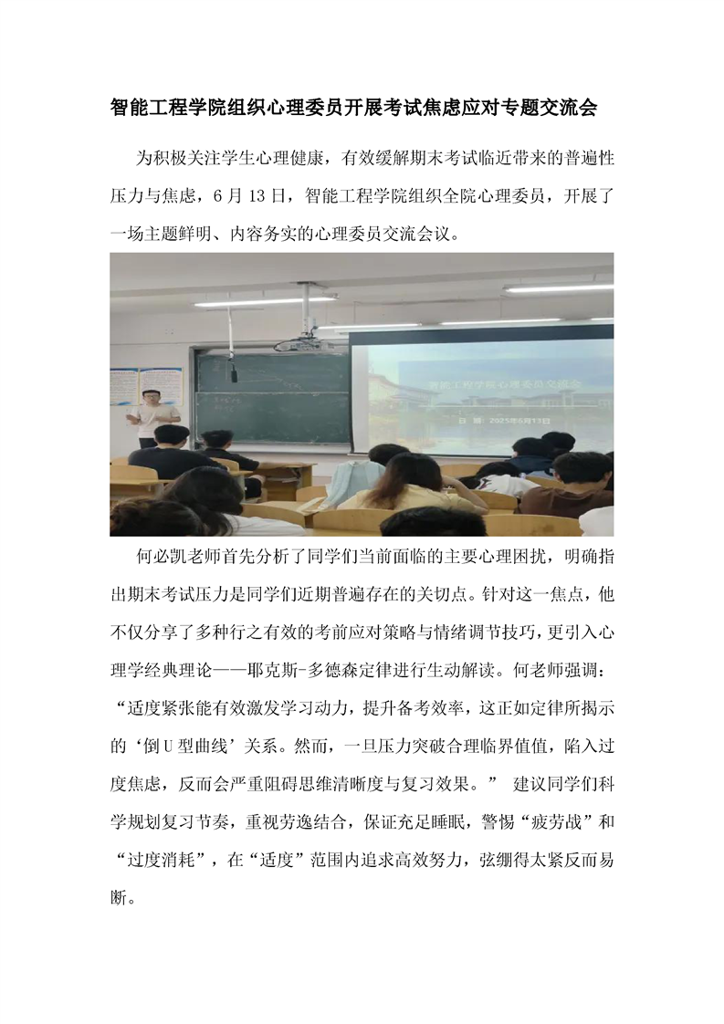 智能工程学院组织心理委员开展考试焦虑应对专题交流会