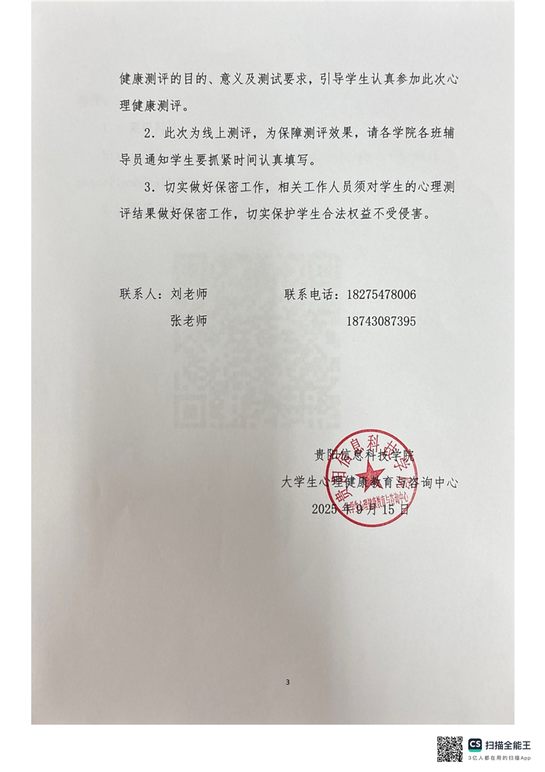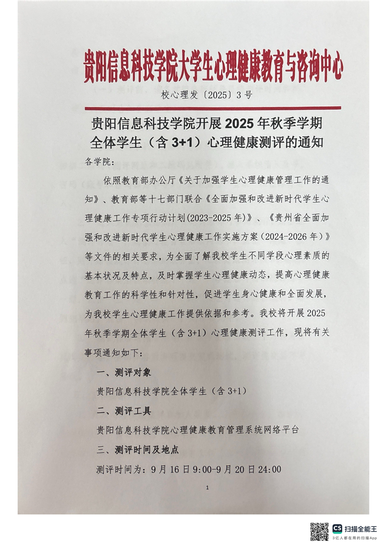 beat365在线唯一官网开展2025秋季学期全体学生(含3+1)心理健康测评的通知