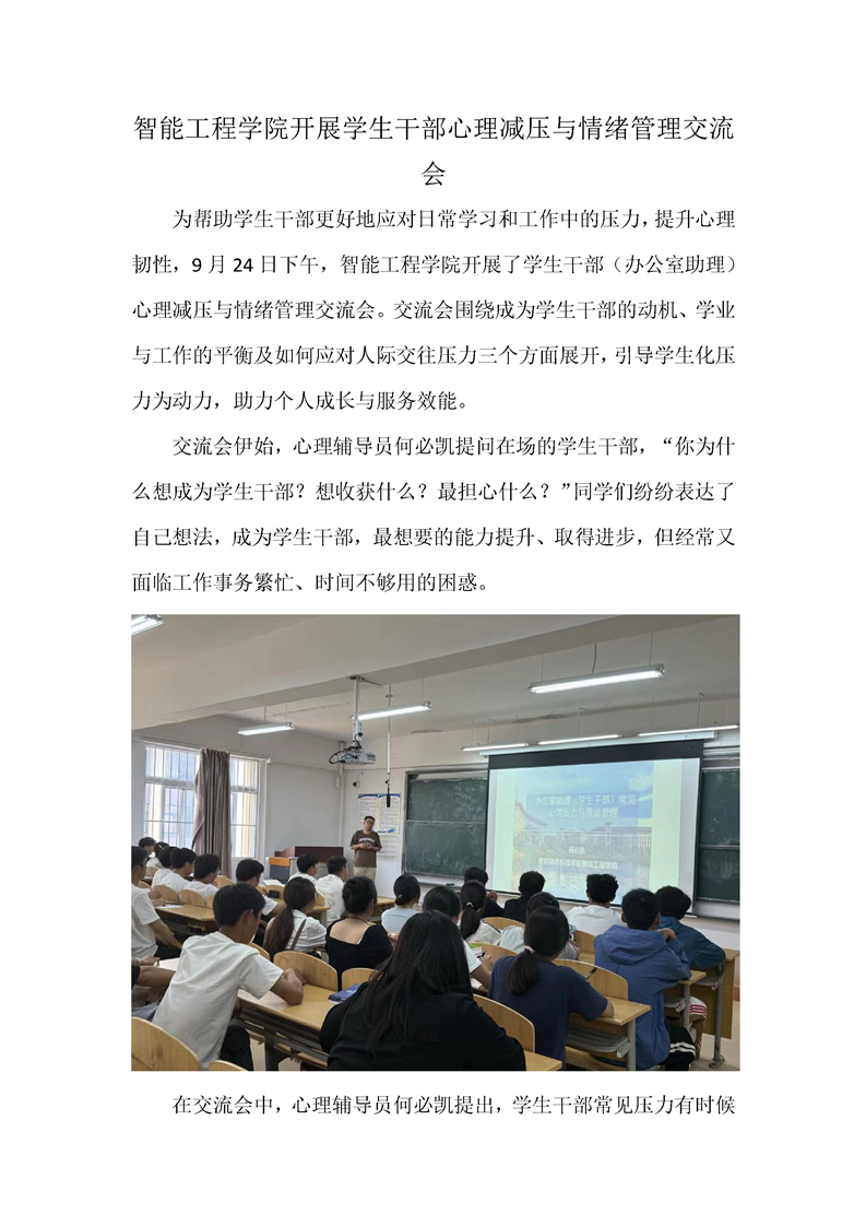 智能工程学院开展学生干部心理减压与情绪管理交流会