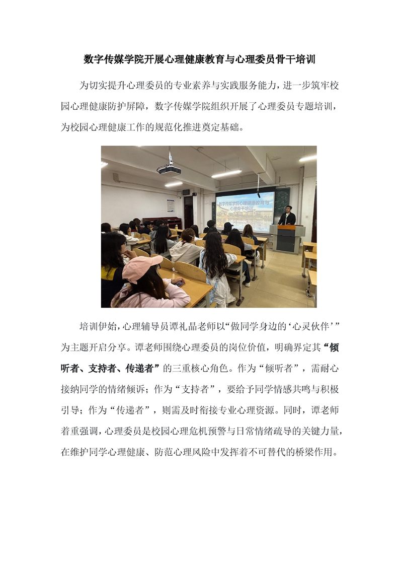 数字传媒学院开展心理健康教育与心理委员骨干培训