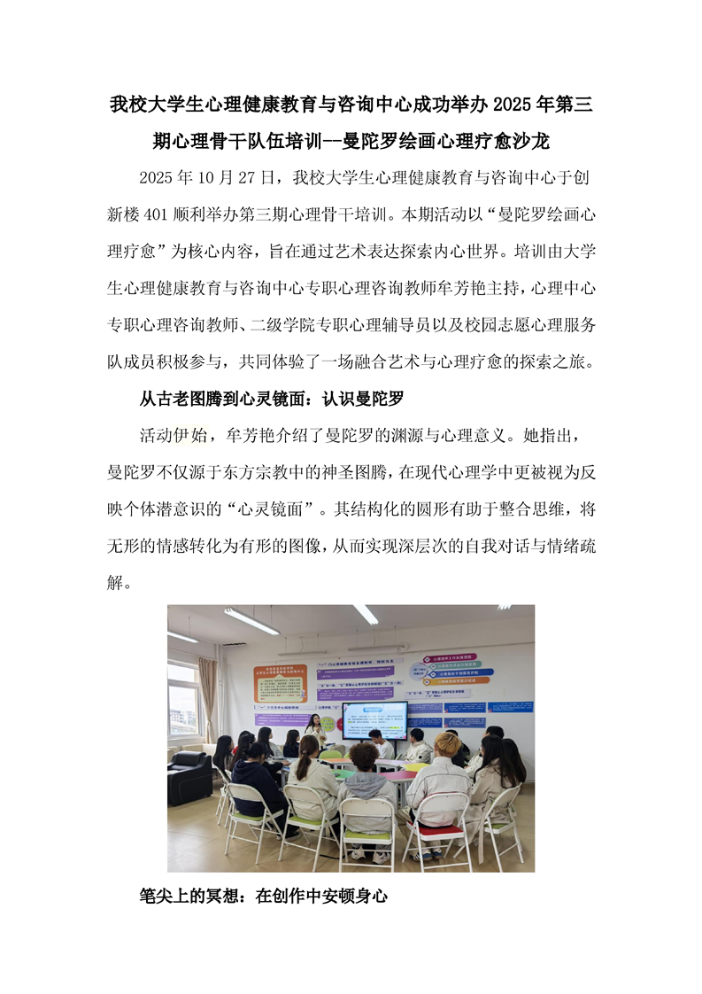 beat365大学生心理健康教育与咨询中心成功举办2025年第三期心理骨干队伍培训--曼陀罗绘画心理疗愈沙龙