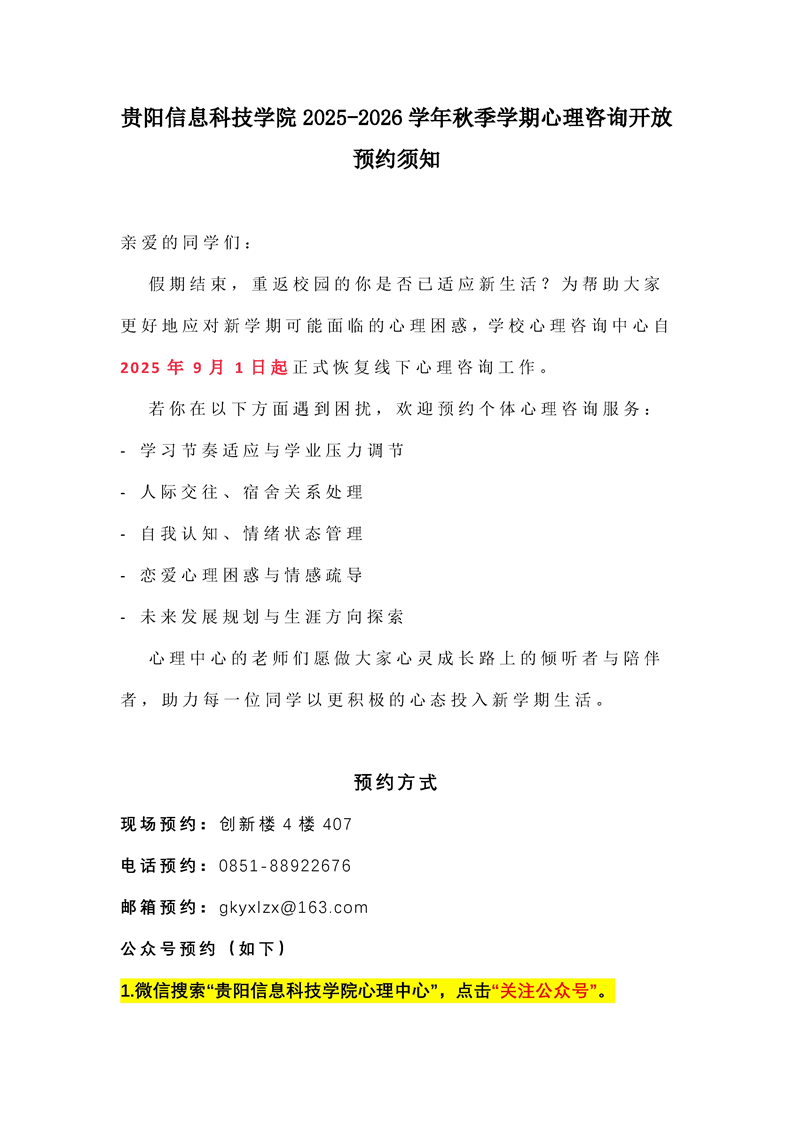 beat365在线唯一官网2025-2026学年秋季学期心理咨询开放预约须知