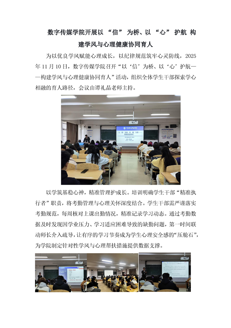 数字传媒学院开展以 “信” 为桥、以 “心” 护航 构建学风与心理健康协同育人