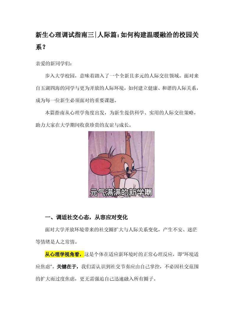 新生心理调试指南三|人际篇:如何构建温暖融洽的校园关系?