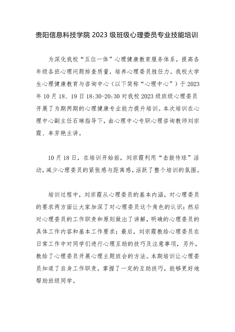 beat365在线唯一官网2023级班级心理委员专业技能培训