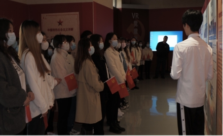 本次参观学习由学生第一党支部讲解员张晨骏同学主持。从1921年至今,从昔日的小小红船到今日的巍巍巨轮,在张晨骏的带领下,全体党员同志再一次深刻地了解了党的光辉历史。党建馆内的每一段文字都是一段不能忘却的历史,一个个字符都在向全体师生党员们诉说着先辈的艰辛与不易。
