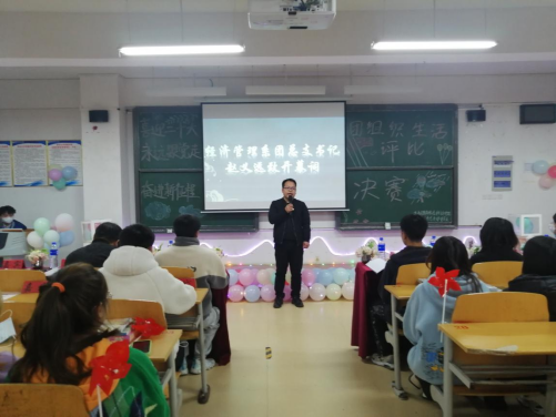经济管理系团总支书记赵义远对在场的青年大学生提出殷切期望,青年大学生应担起实现中华民族伟大复兴的大任,增强“四个意识”,坚定“四个自信”,做到“两个维护”,树立远大理想!