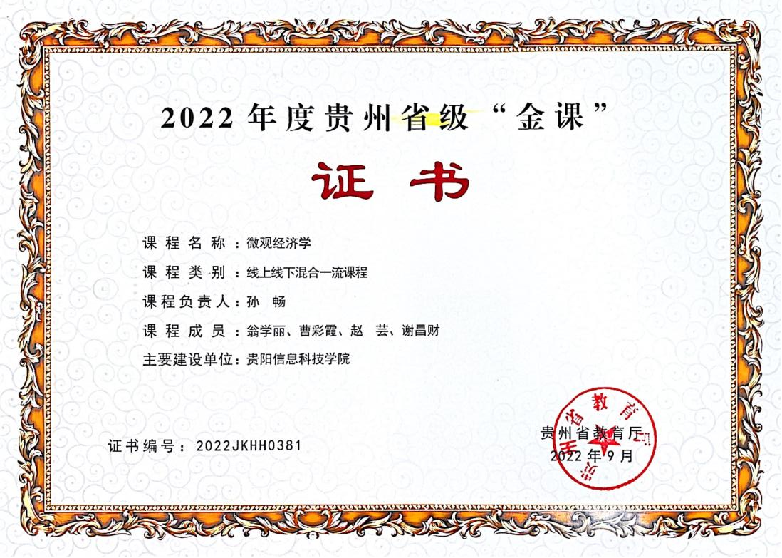 2.《微观经济学》课程获批2022年省级一流课程;