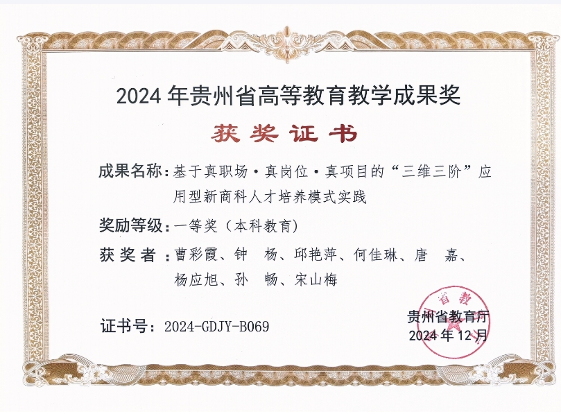 4.参与获得2024年贵州省教育成果一等奖;