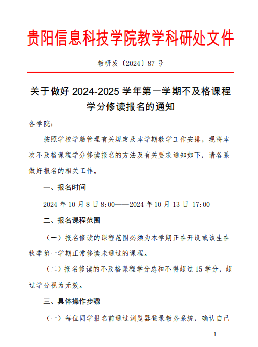 beat365在线唯一官网关于做好2024-2025-1学期不及格课程学分修读报名的通知-教研发〔2024〕87号.pdf