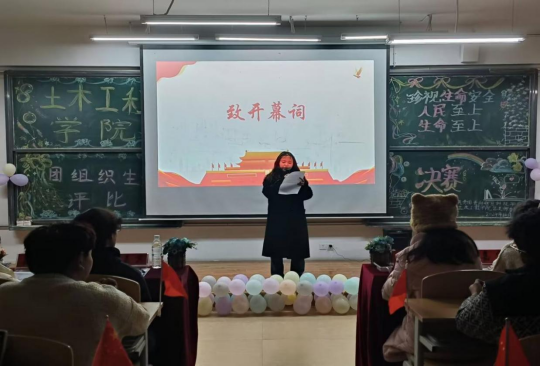 (图为土木工程学院团总支、学生会副书记王庆龄致开幕词)