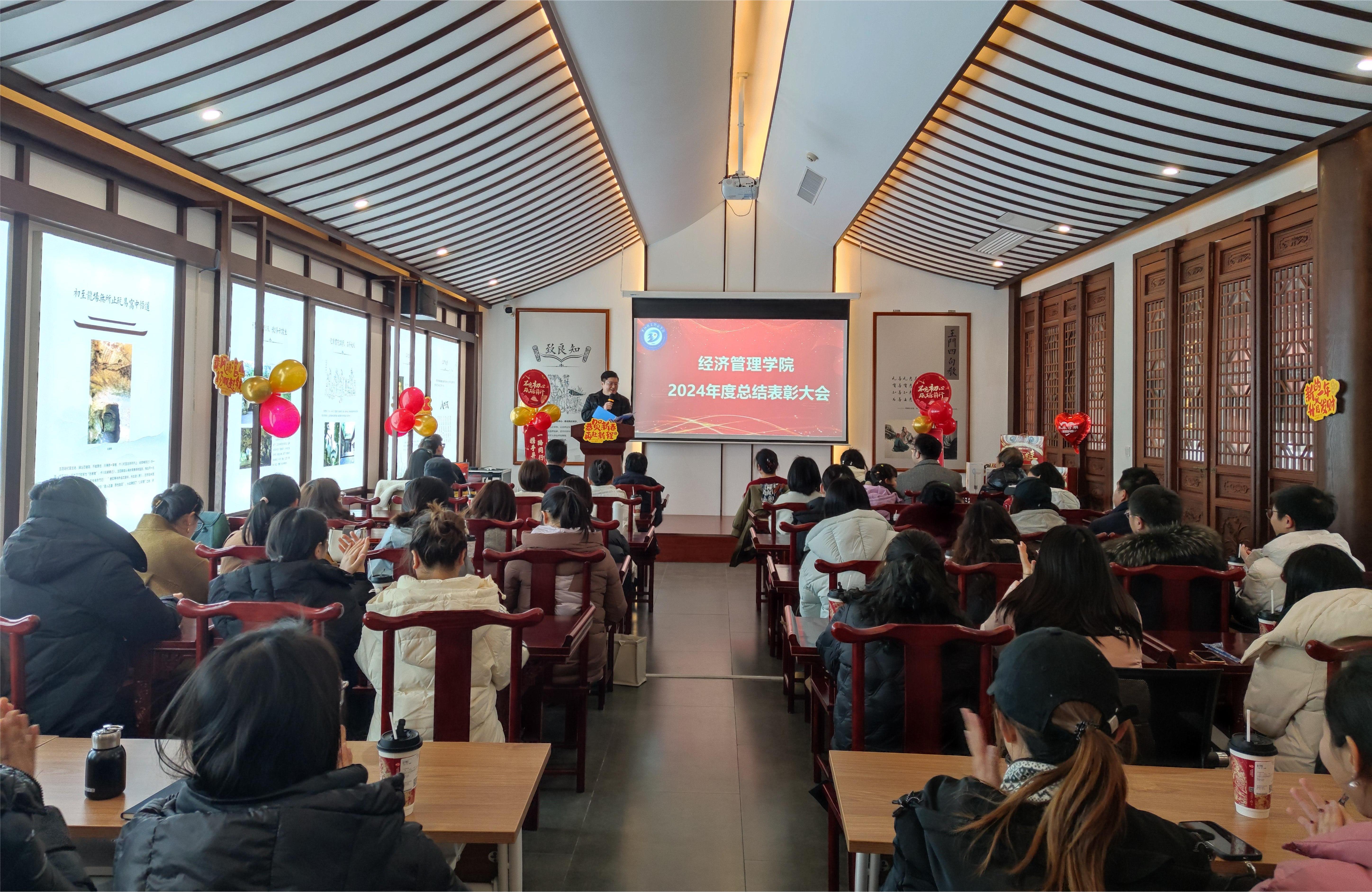 新闻网讯(供稿供图 李飞)2025年1月10日下午,beat365在线唯一官网经济管理学院在风景如画的阳明书院升平馆内,隆重召开了2024年度工作总结暨表彰大会。此次大会旨在全面总结经验,表彰先进典型,明确未来方向,激励全体教职工砥砺奋进,再创辉煌。