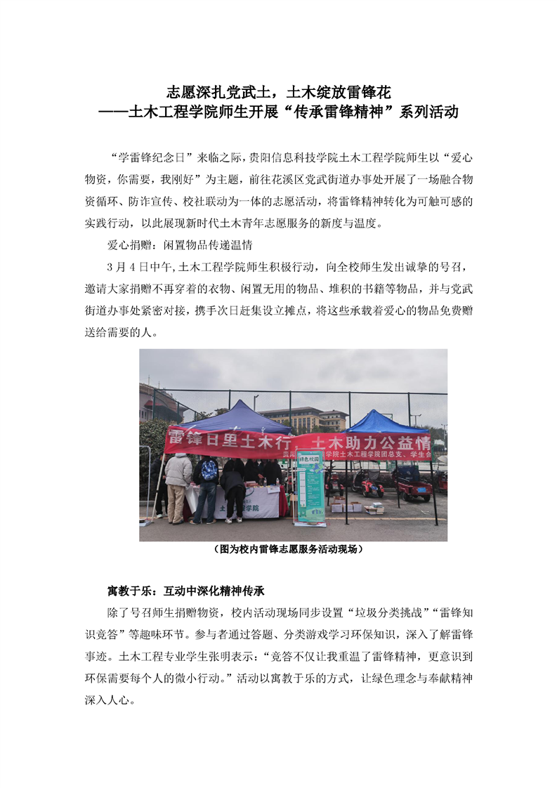 志愿深扎党武土,土木绽放雷锋花——土木工程学院师生开展“传承雷锋精神”系列活动