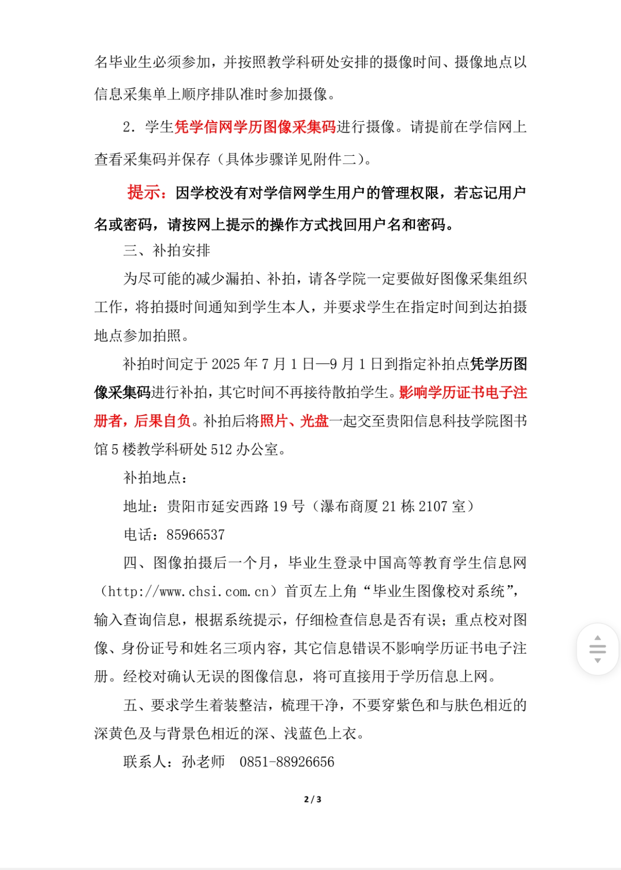 附件一:2026届毕业生图像信息采集时间及拍摄顺序表.pdf