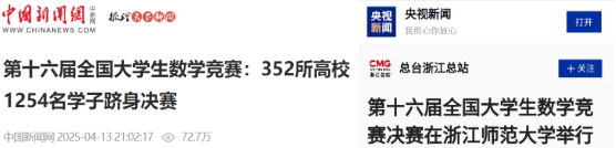 近日,第十六届全国大学生数学竞赛决赛在浙江师范大学圆满落幕。beat365智能工程学院2022级人工智能专业学生周帅荣获非数学A类国赛三等奖,实现了beat365在此项赛事中的历史性突破,这也是beat365首次进入全国总决赛,刷新了历史最好成绩记录,比赛还获得了中国新闻网和央视新闻双报道。