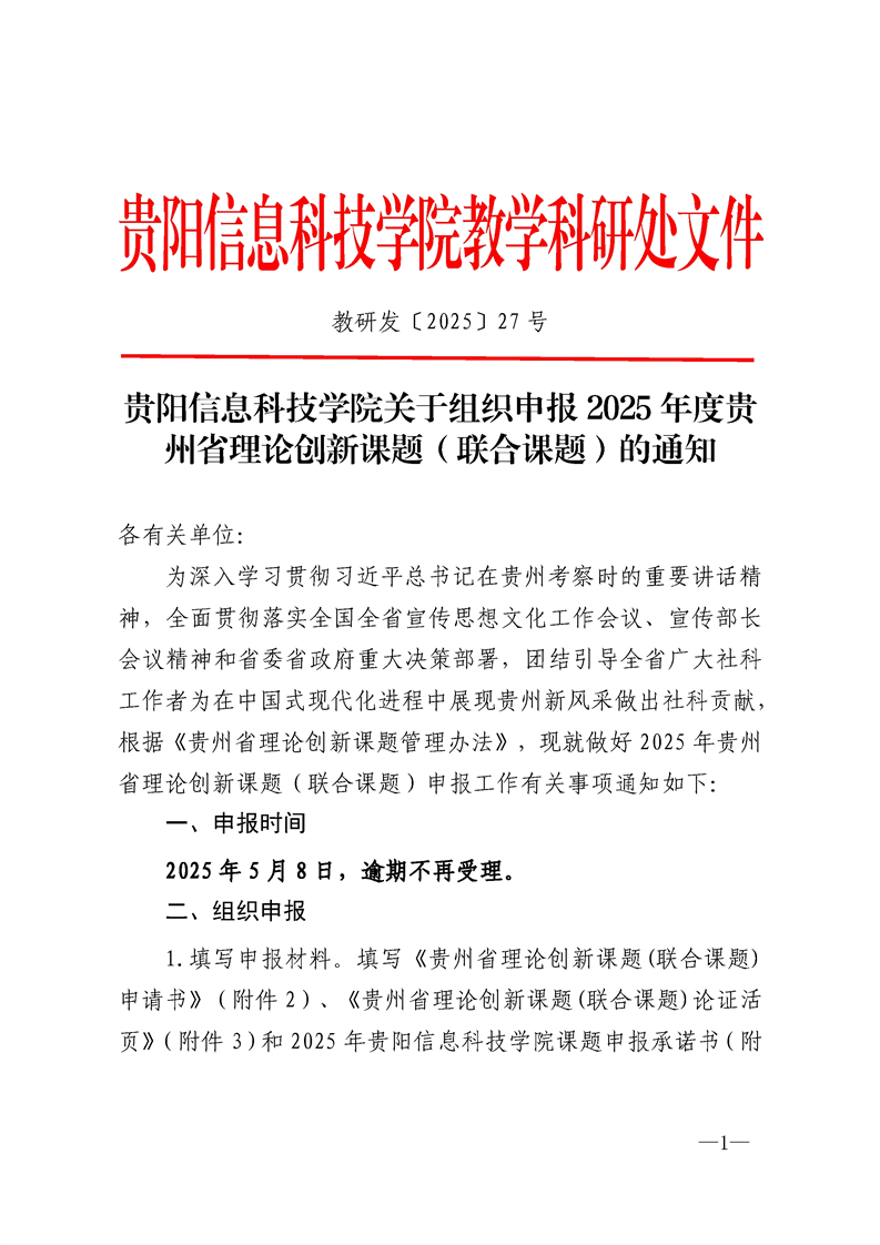 beat365在线唯一官网关于组织申报2025年度贵州省理论创新课题(联合课题)的通知