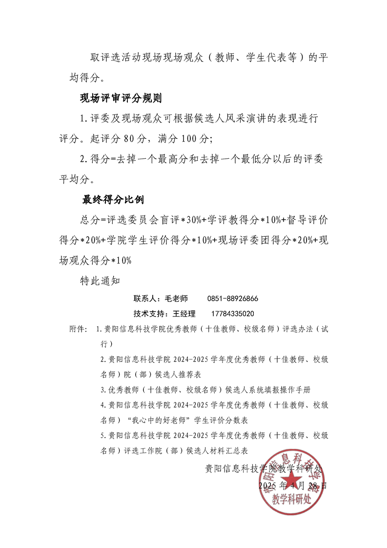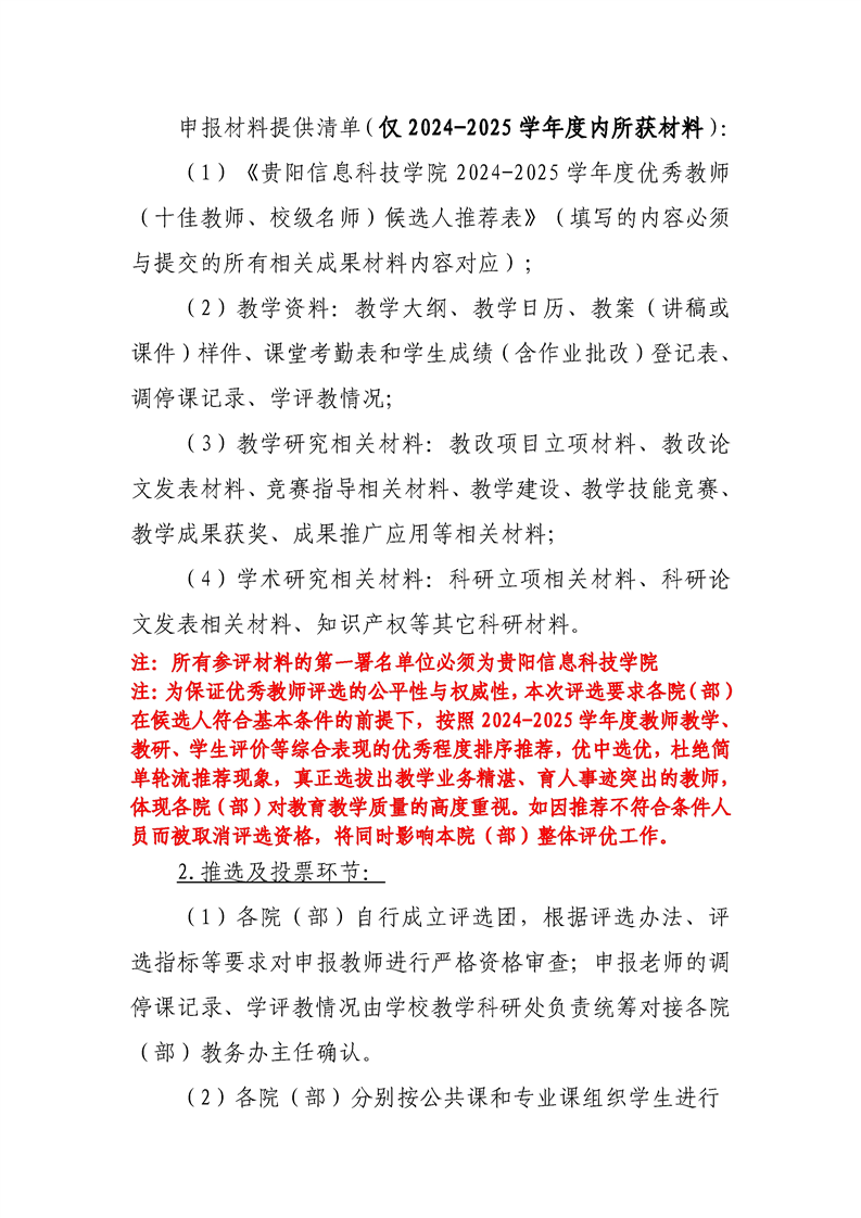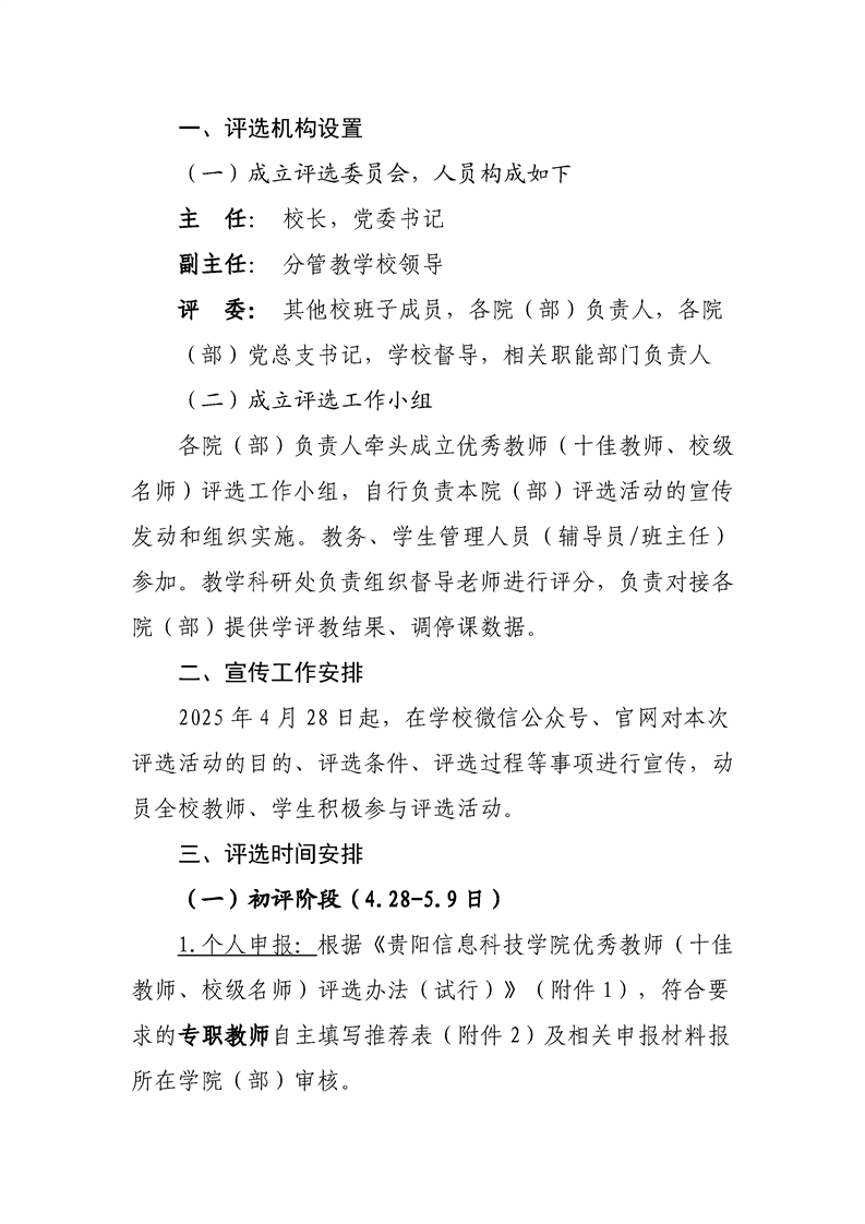关于组织开展2024-2025学年度优秀教师(十佳教师、校级名师)评选活动的通知