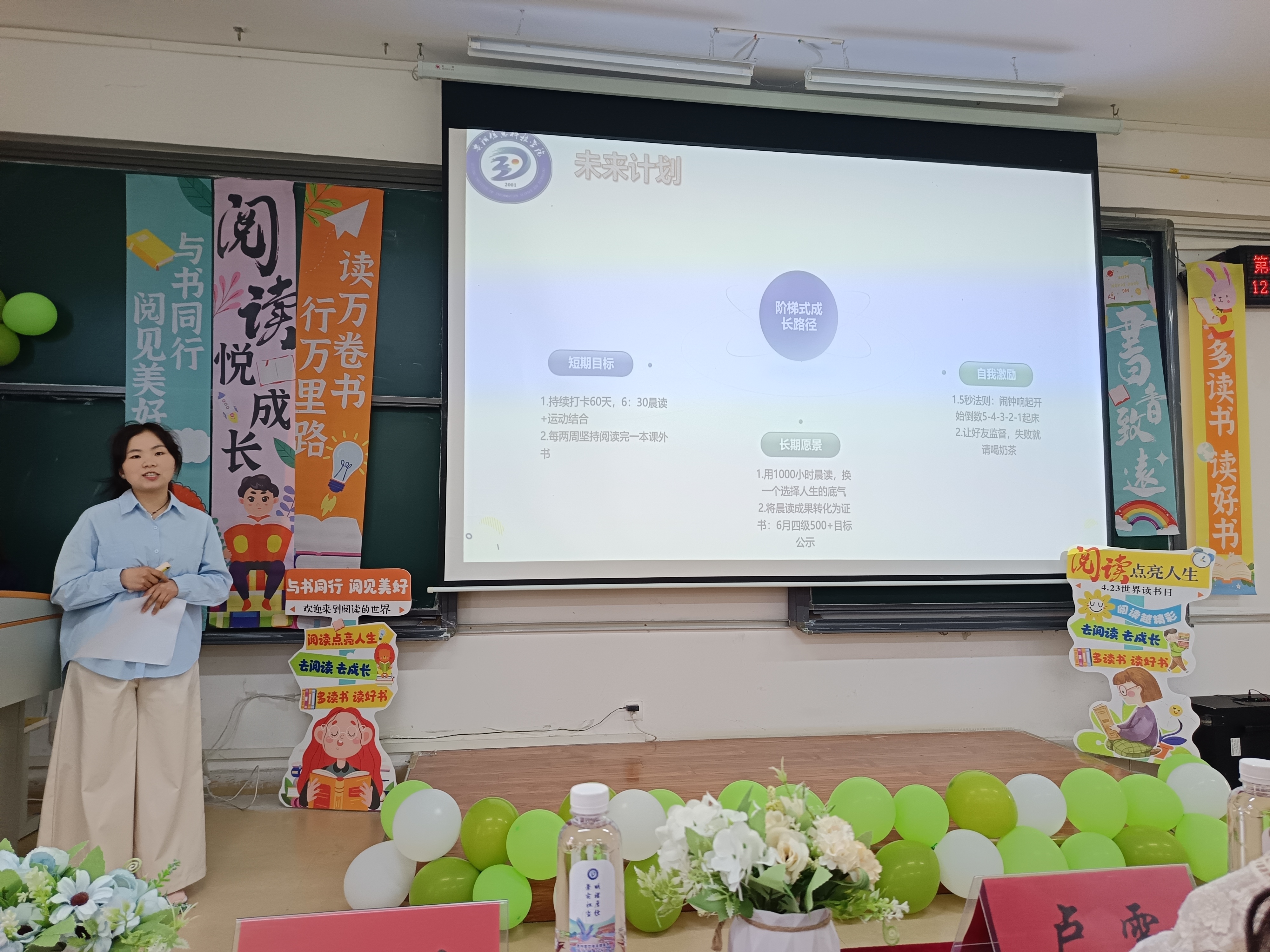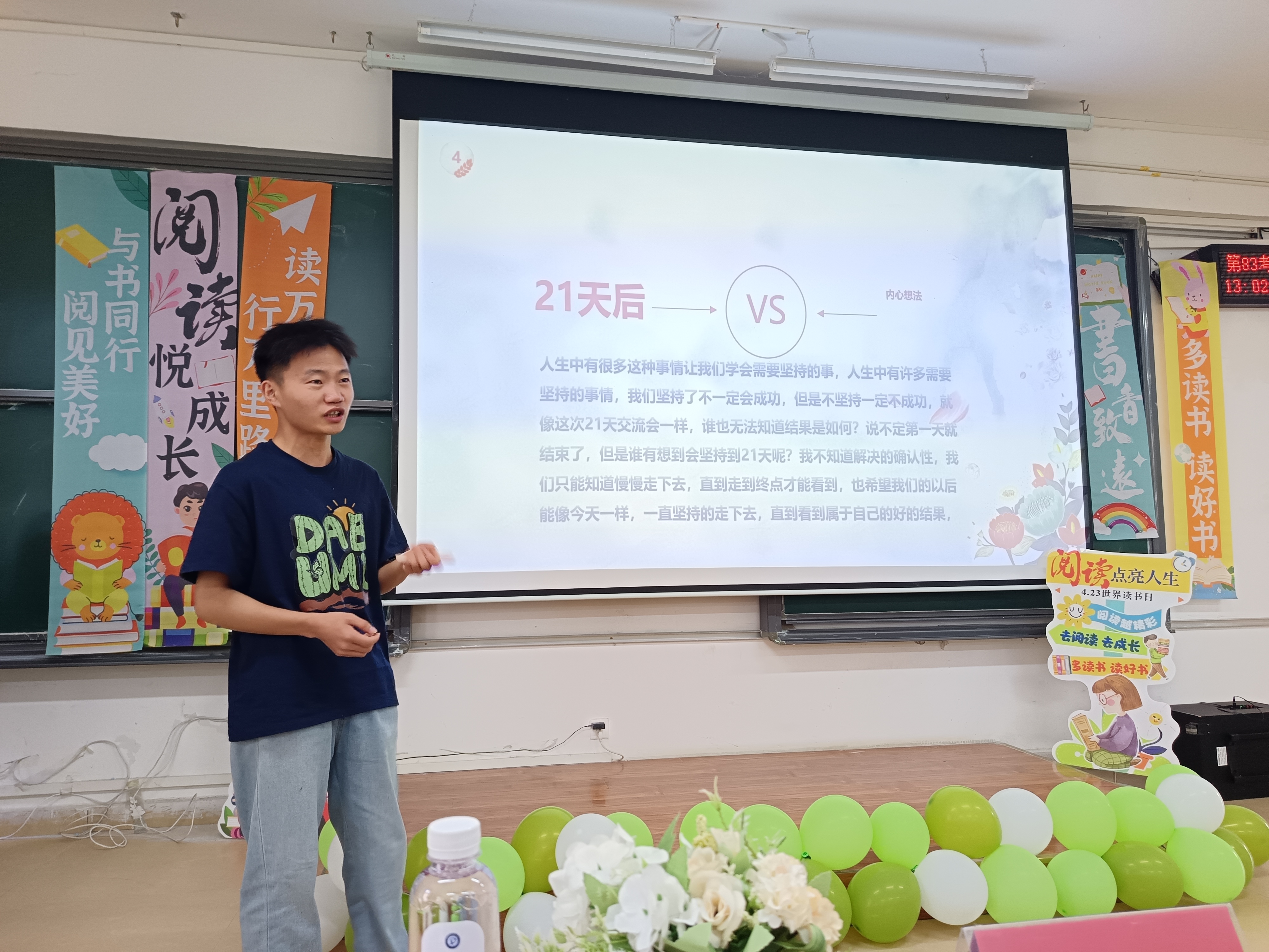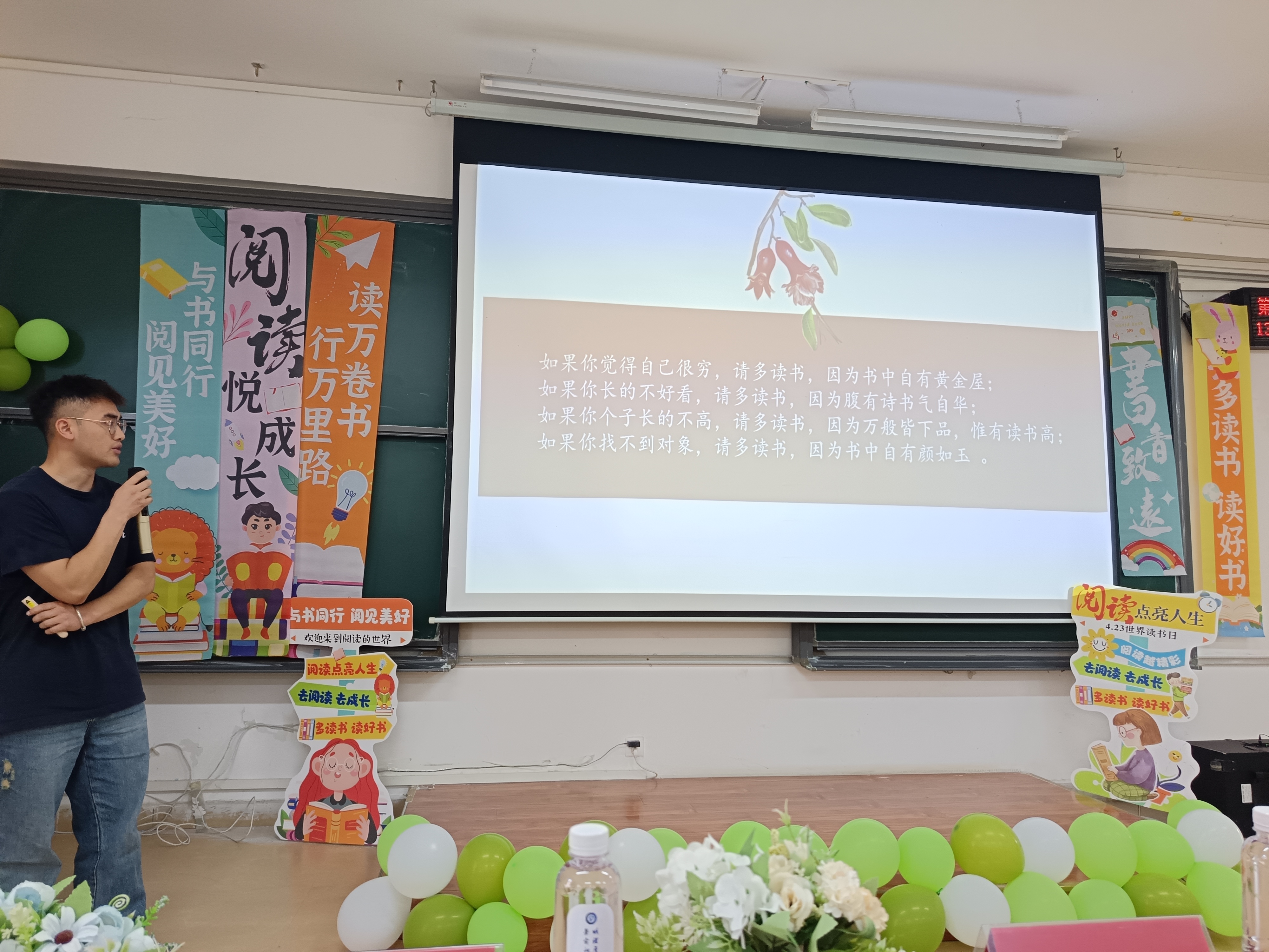 学校图书馆办公室副主任何正直老师作总结讲话。他先是对此次活动的成效给予了充分肯定,以饱含期许的话语分享了自己的深刻感悟:“一直以来,我始终认为阅读是一场孤独却意义非凡的精神跋涉。在今天的活动中,我欣喜地看到,校园的角落里处处可见同学们专注阅读的身影,无数年轻的心灵正沿着知识的长河奋力前行。这些闪耀着求知光芒的瞬间,不仅印证了阅读的强大生命力,更让我看到了当代青年对知识的执着追求与不懈探索。”并寄语全体同学:“希望大家能将这份对学习和阅读的热爱转化为持续的行动,让阅读成为滋养心灵的日常习惯。更期待你们能以自身为火种,将这份求知的热忱传递给身边的每一个人,让坚持的力量在校园中薪火相传,共同书写属于我们的知识华章。”