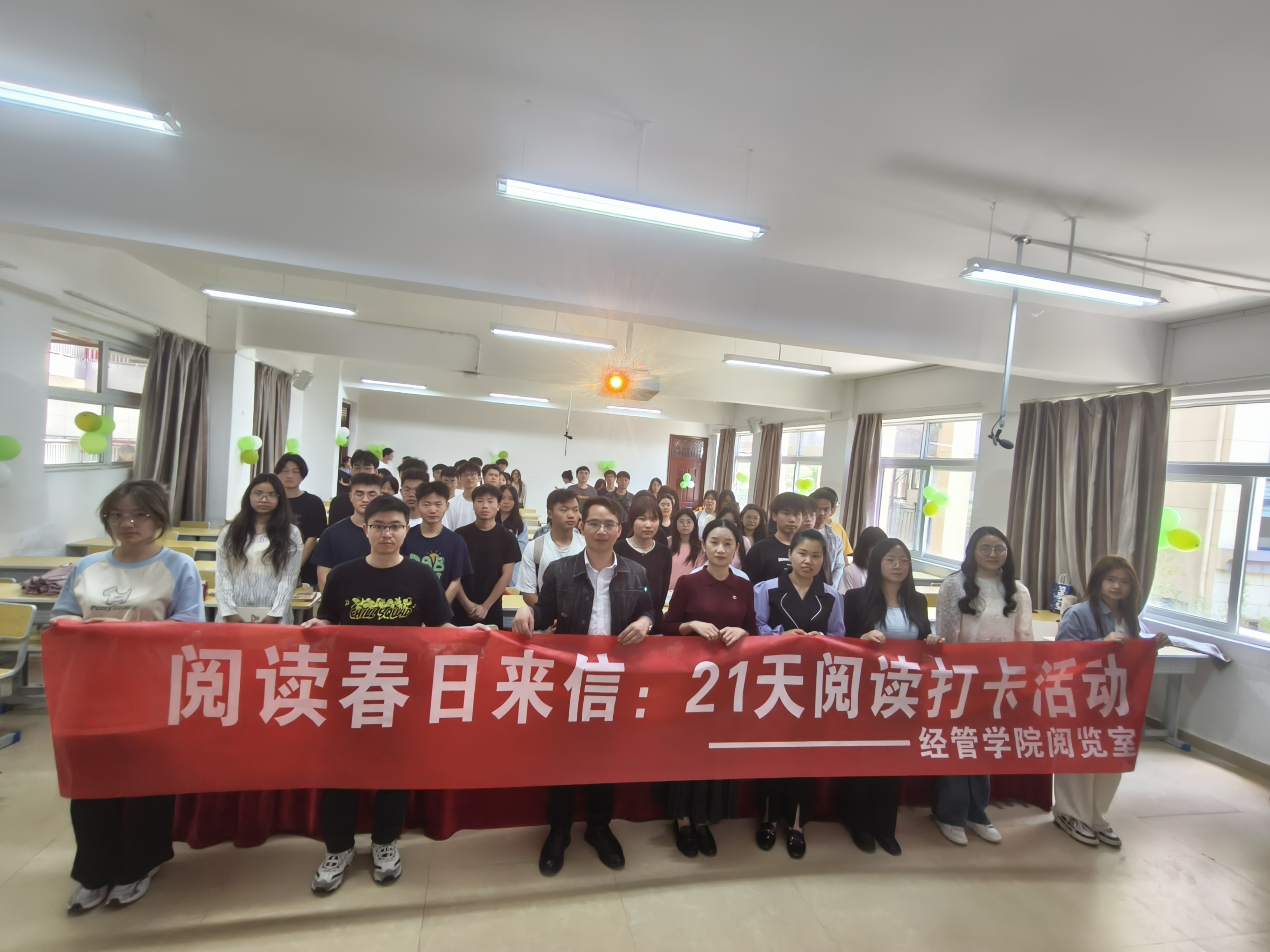 新闻网讯(供稿/供图 经济管理学院阅览室助理)2025年5月12日,经济管理学院在C栋211教室隆重举行“阅读春日来信,21天阅读打卡活动”总结表彰大会。学校图书馆办公室副主任何正直,刘娟老师出席活动,学院党总支书记莫建活、学工办主任郭东越及师生代表100余人齐聚一堂,共赴这场精神盛宴,见证文学在时光里绽放的力量。