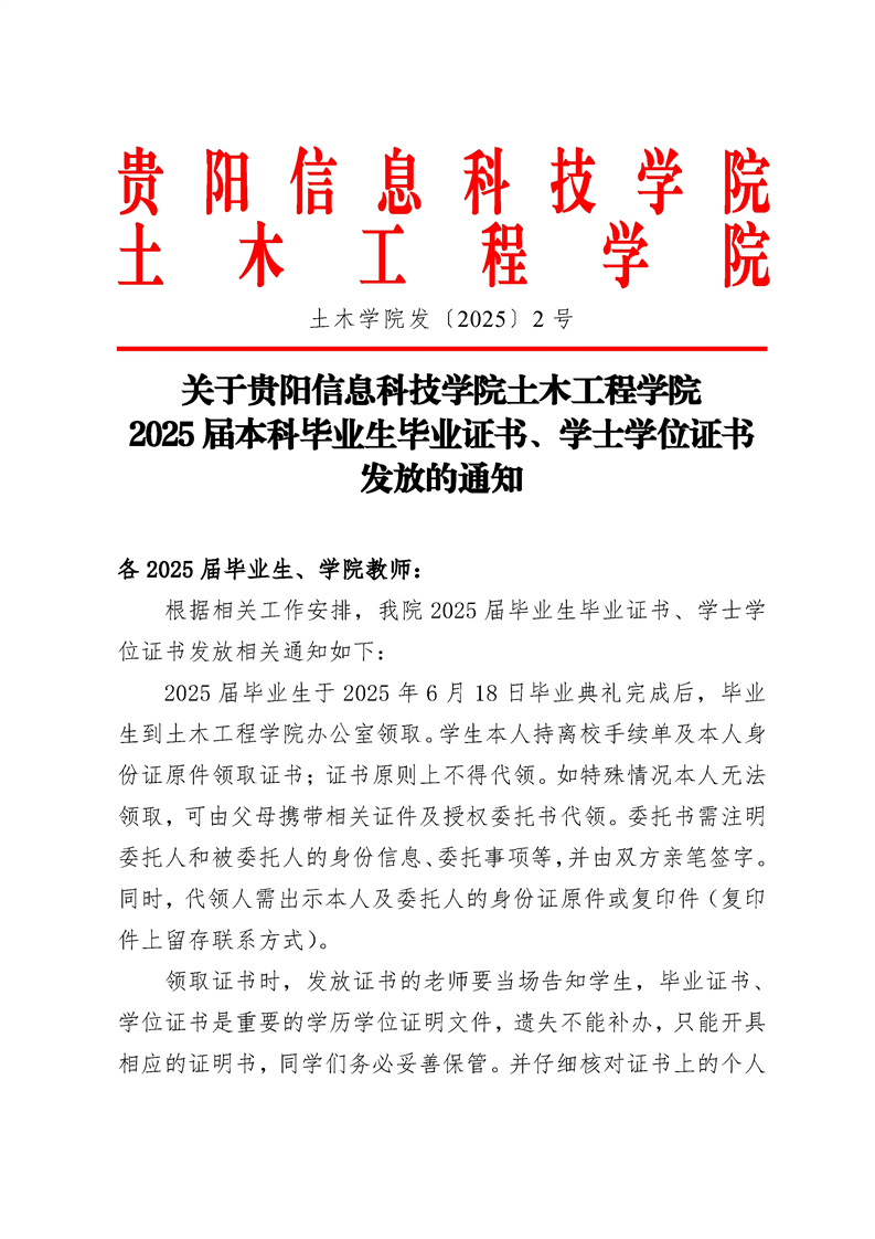 关于beat365在线唯一官网土木工程学院2025 届本科毕业生毕业证书、学士学位证书发放的通知