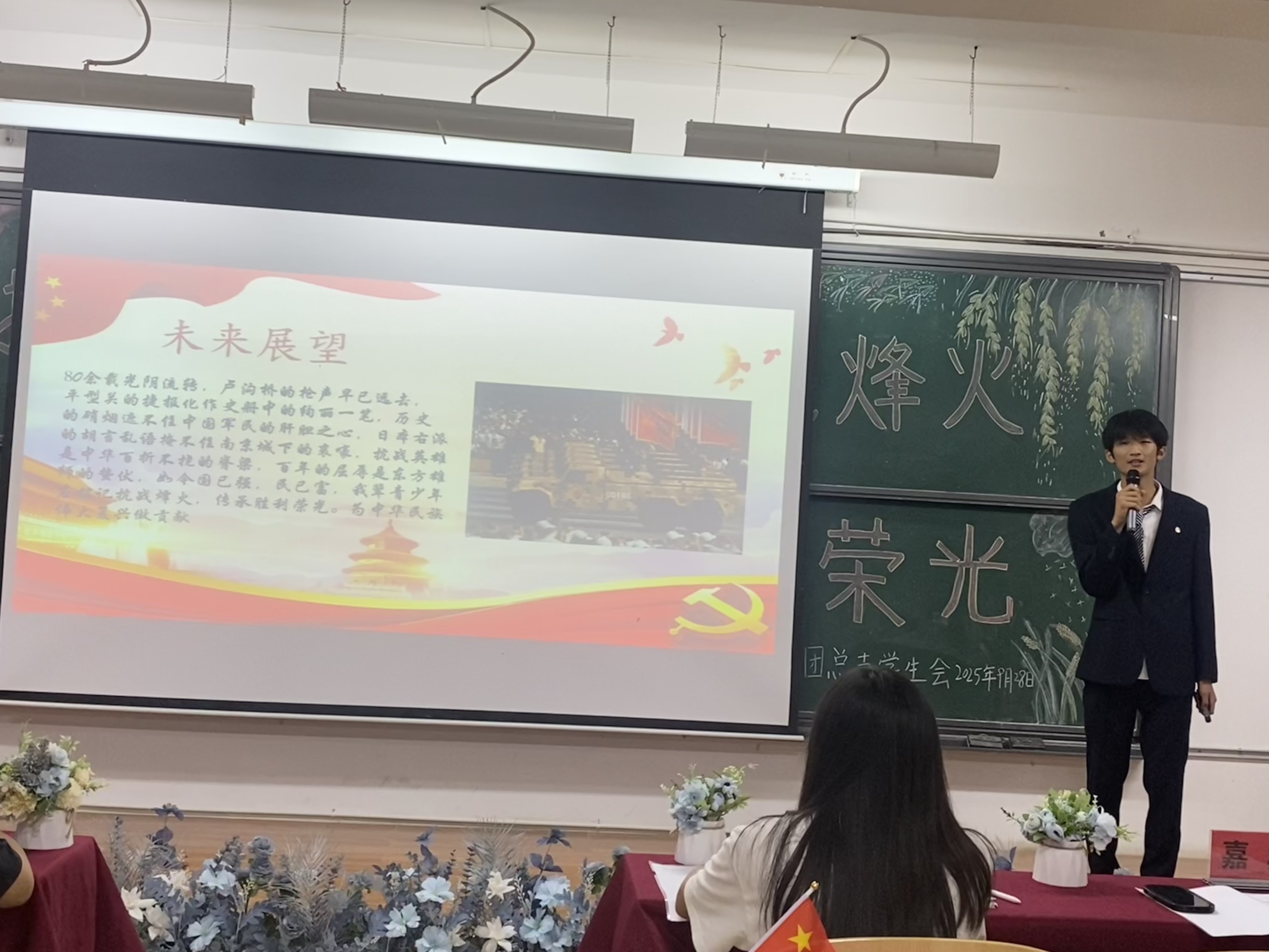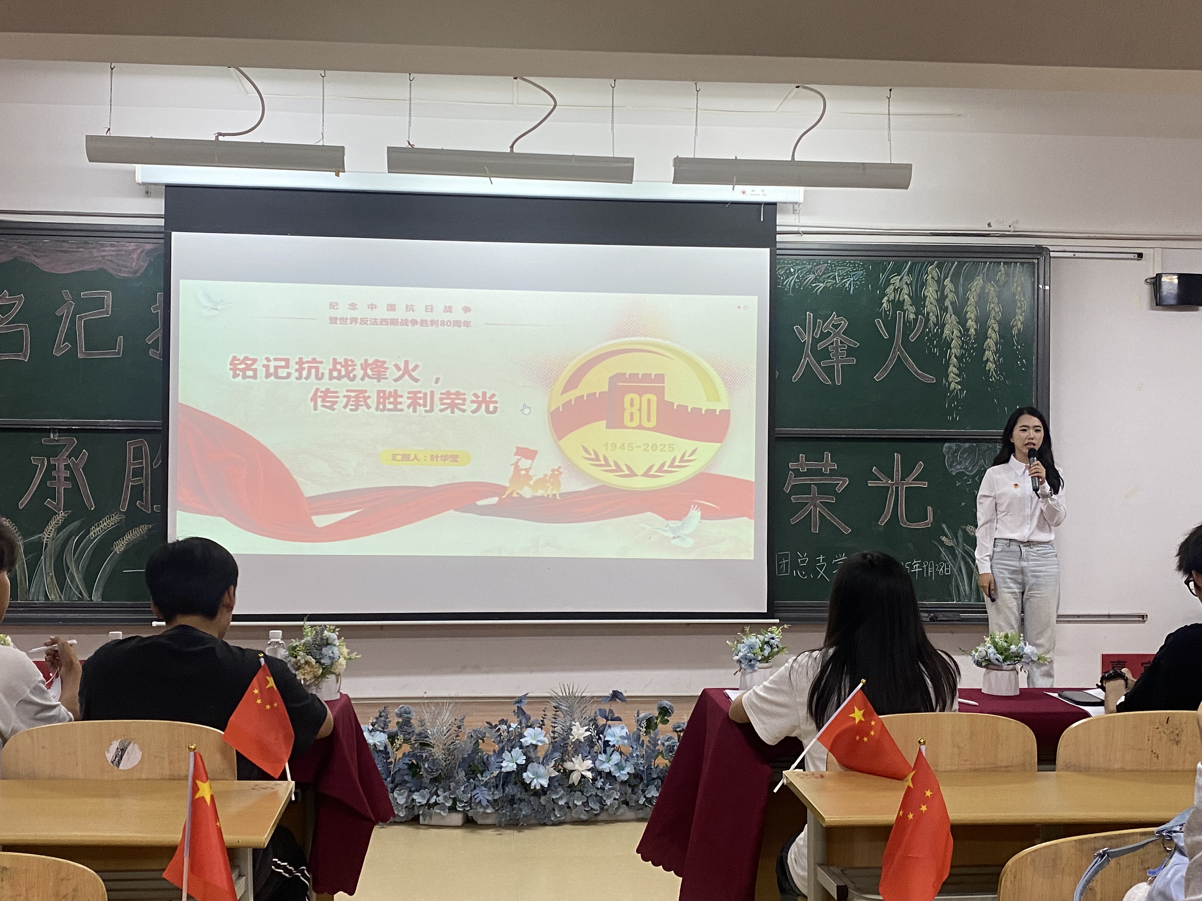 新闻网讯(供稿 朱清婷 罗廷美 供图 王梦竹)为厚植团员青年的历史认同与家国情怀,推动红色基因融入青年血脉、扎根校园沃土,激活基层团组织红色引擎,经济管理学院于2025年9月28日在B栋409室举办“铭记抗战烽火,传承胜利荣光”主题团组织生活评比活动。