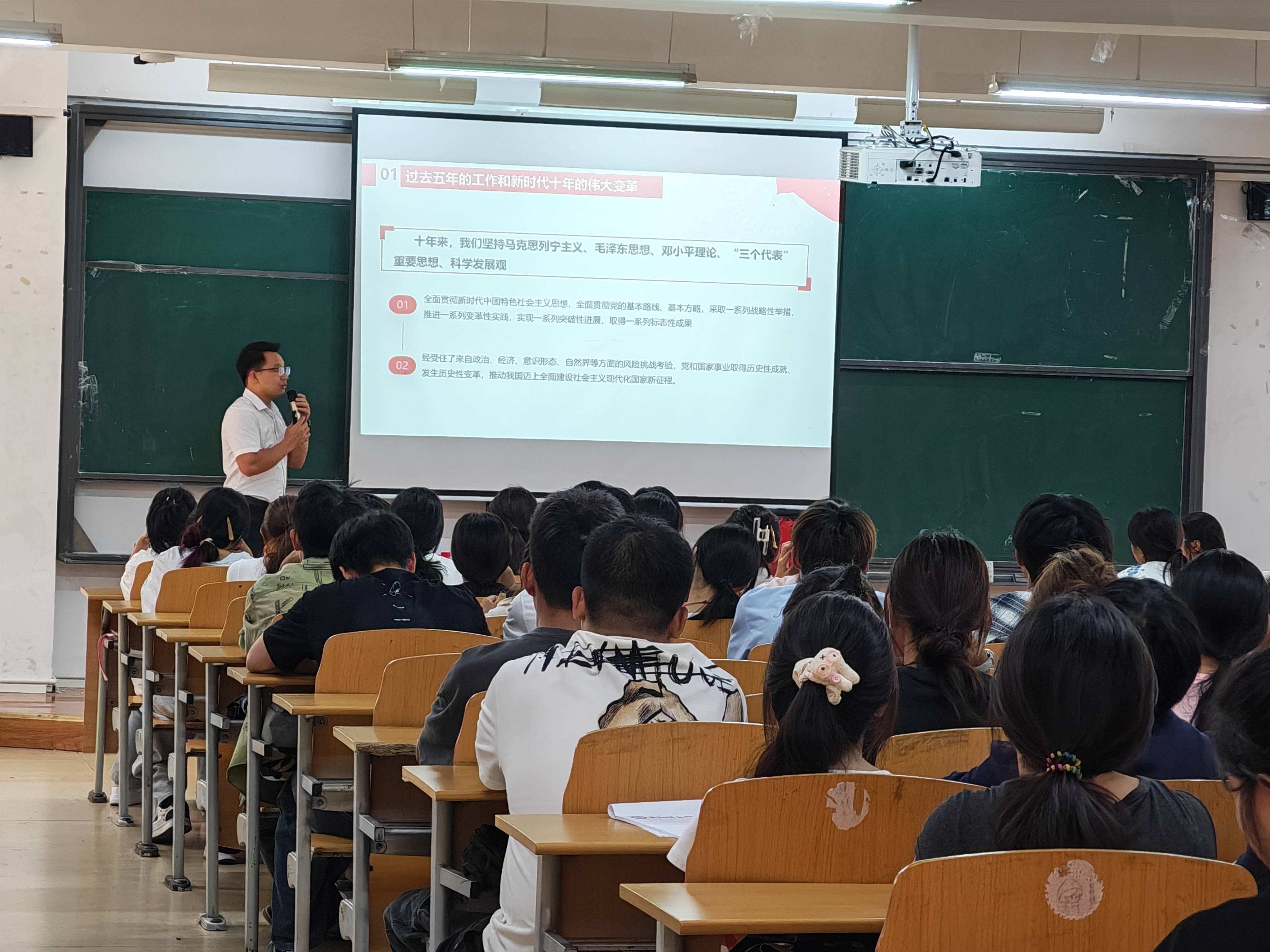 2025年10月11日,莫书记在B210教室开展“党的二十大精神专题学习”课堂讲座,为团员青年解读大会精神、明晰使命方向。既总结新时代伟大变革、阐述马克思主义中国化新境界,也结合现代化建设蓝图解析民族复兴路径。内容不仅让青年明确自身历史任务,更有效激发大家主动投身科技创新、基层服务等实践的责任感,为青年将个人成长融入国家发展大局提供思想指引。