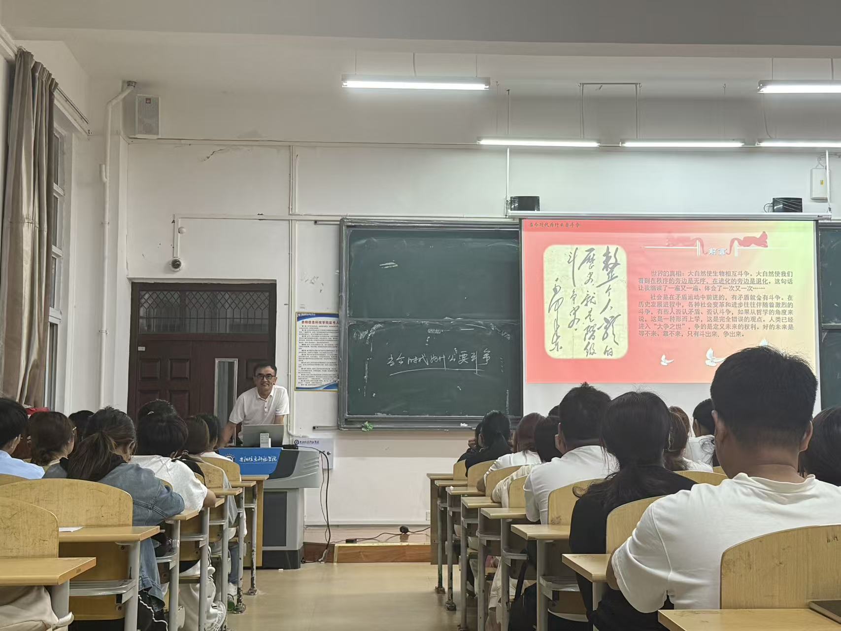 2025年10月14日,潘明思老师在C104教室开展“当今的我们为什么要斗争”启智润心讲座。他结合国际国内形势,从历史维度阐释斗争精神要义,从现实视角剖析青年机遇与挑战,深刻诠释 “斗争是青春最亮丽的底色”。课堂上,他引导团员求知破难题、实践练本领,立志成长为可堪大用、能担重任的时代新人。