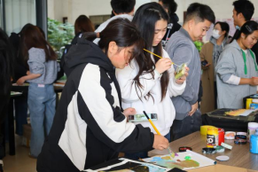 活动现场精心筹备了品类齐全的丙烯颜料与多型号专业画笔,以完备的物资保障为同学们的艺术创作筑牢基础,让创意表达无后顾之忧。创作环节中,同学们围绕色彩搭配巧思与画面构图技巧展开深入交流,灵感在思想碰撞间迸发,温馨融洽的氛围与热烈高涨的创作热情交织,生动展现出大家对艺术的热爱与团队协作的活力。