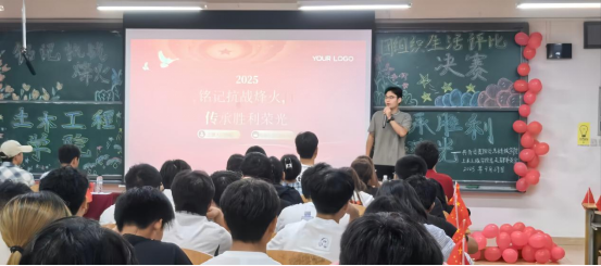 新闻网讯(供图 供稿 土木工程学院杨婷 张鹏)为厚植青年学生的爱国情怀与历史责任感,beat365在线唯一官网土木工程学院于2025年9月29日19:00,成功举办了以“铭记抗战烽火,传承胜利荣光”为主题的团组织生活评比决赛。活动现场秩序井然,气氛庄重而热烈。参赛选手们准备充分,精神饱满,为在场师生呈现了一场富有教育意义的视听盛宴。