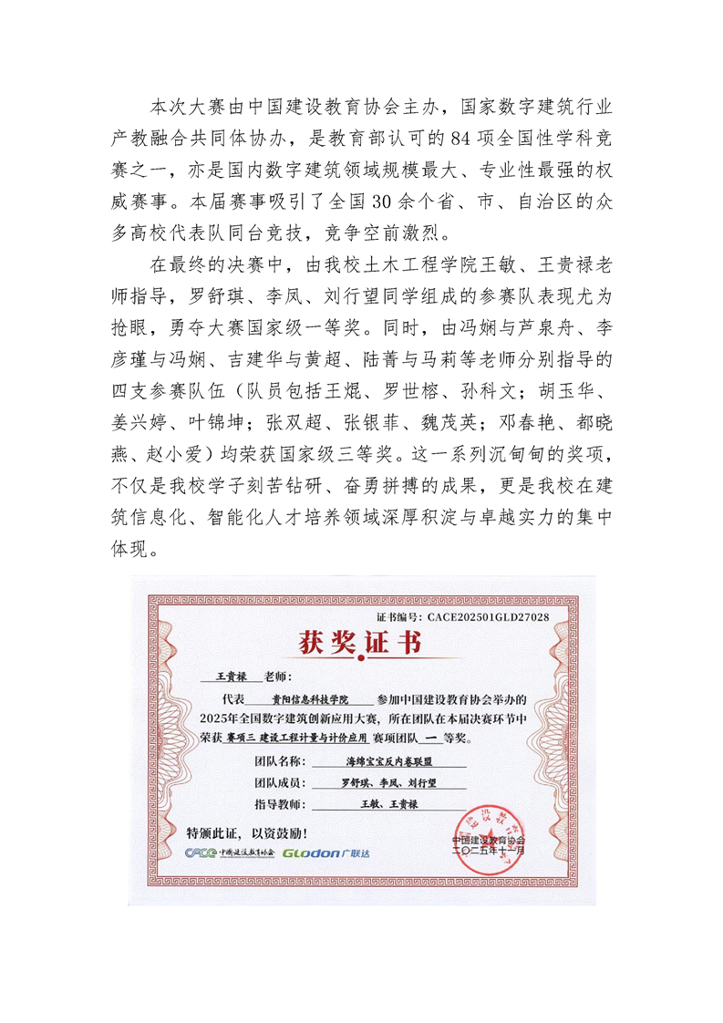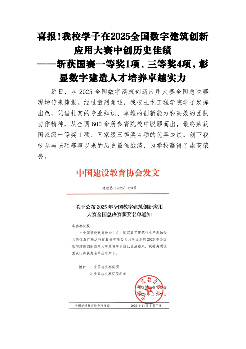 喜报!beat365学子在2025全国数字建筑创新应用大赛中创历史佳绩 ——斩获国赛一等奖1项、三等奖4项,彰显数字建造人才培养卓越实力