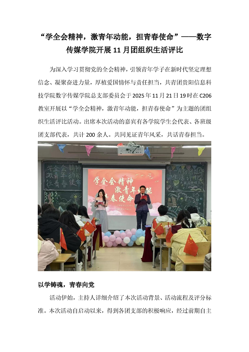 “学全会精神,激青年动能,担青春使命”——数字传媒学院开展11月团组织生活评比